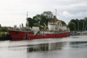 Also machten wir auch bald kehrt und liefen noch ein wenig am Fluss entlang. Überflüssig zu sagen, dass kein einzige Zug auf diesen Schienen fuhr. Am Fluss hatte man alles sehr schön mit Blumenkästen hergerichtet. Es gab zwei riesige Käne zu bestaunen, einen alten rostigen auf der anderen Flussseite und einen großen Handelskahn, der im Industriegebiet ankerte, wo man nicht nährer ran kam. Kurz vor den Toren des Industrieviertels wurde gerade ein Beiboot der Kustbevakning auf deren Schiff verladen. Das war natürlich wiederum toll für Sohnemann, so dass sich die Stimmung auch wieder besserte.